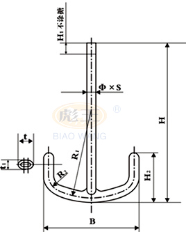 规格 φ×S H H1 H2 H3 B R1 R2 t1 t M1 L