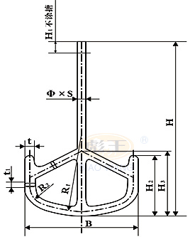 | 规格 | φ×S | H | H1 | H2 | H3 | B | R1 | R2 | t1 | t | M1 | M2 | d | L1 | L2 | L3 |