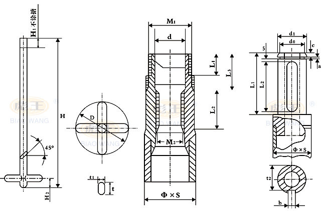 | 规格 | φ×S | H | H1 | H2 | D | t | t1 | d | M1 | M2 | L1 | L2 | L3 |